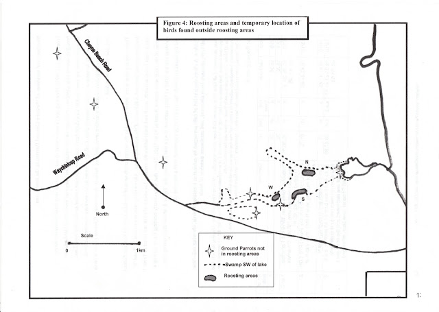 Much has changed in the 13 years since then regarding distribution so the map is inaccurate now. No Western Ground Parrots have been found at Waychinicup since 2004, and none has been found in Fitzgerald River National Park since 2012. The population number is still estimated at fewer than 200. Wildfire and predation are definitely serious threats - the word 'possibly' would not be used nowadays.